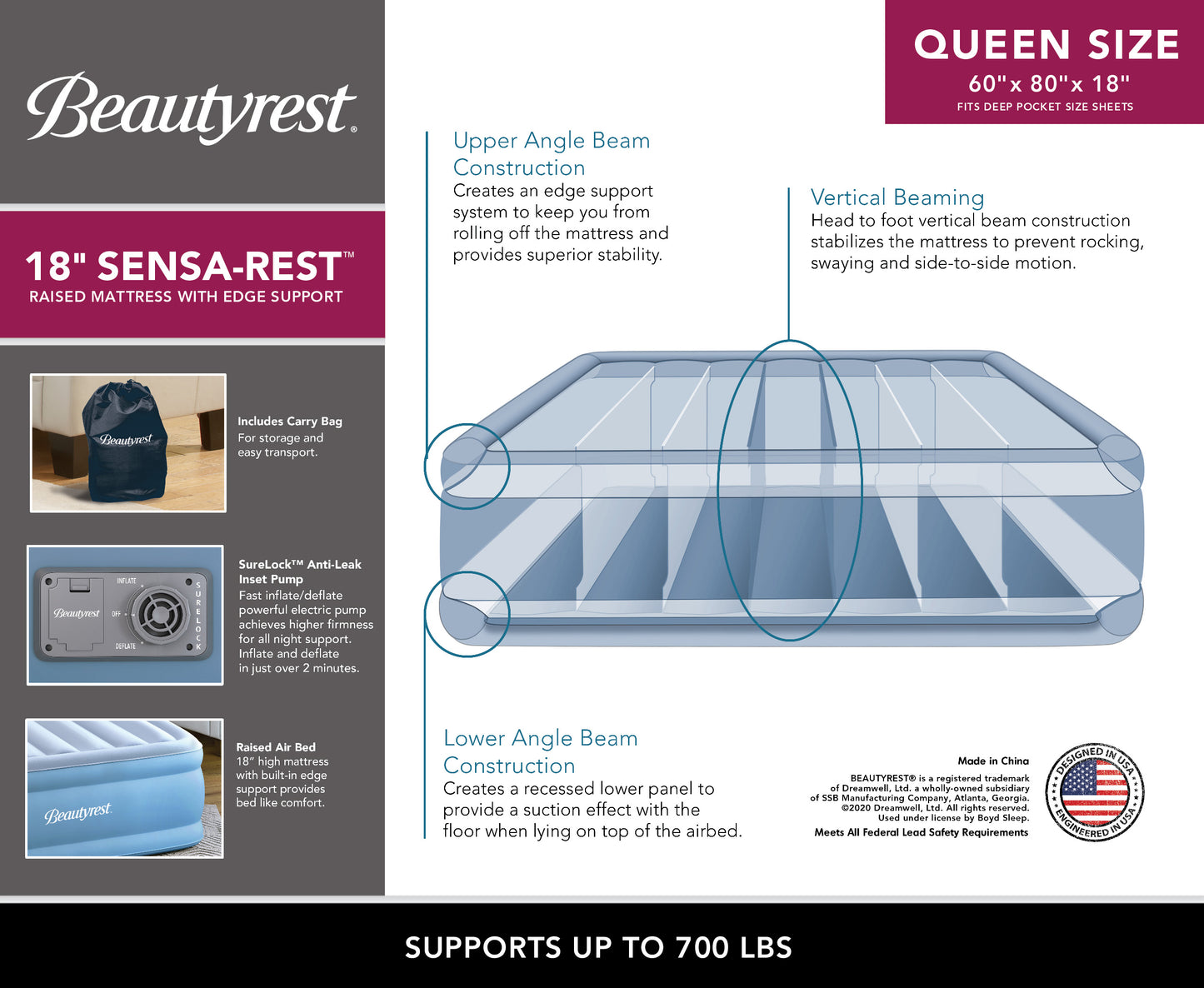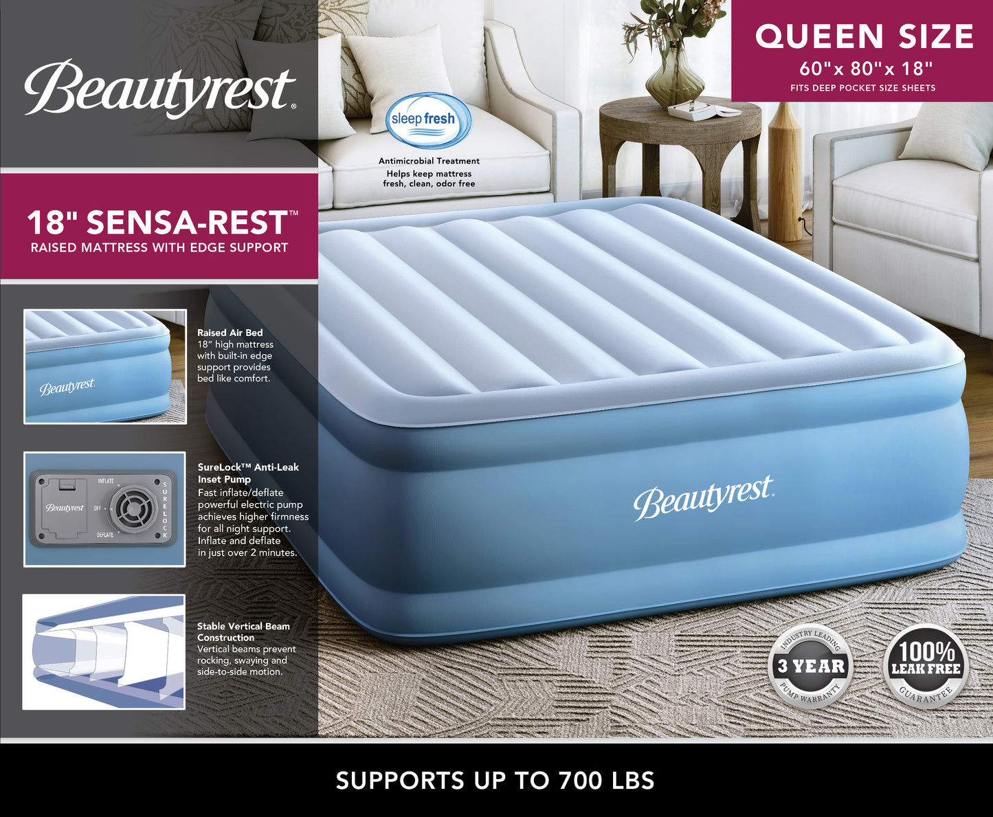 This Beautyrest® raised air mattress features careful attention to detail to provide you or your guests traditional mattress like comfort whenever you need.