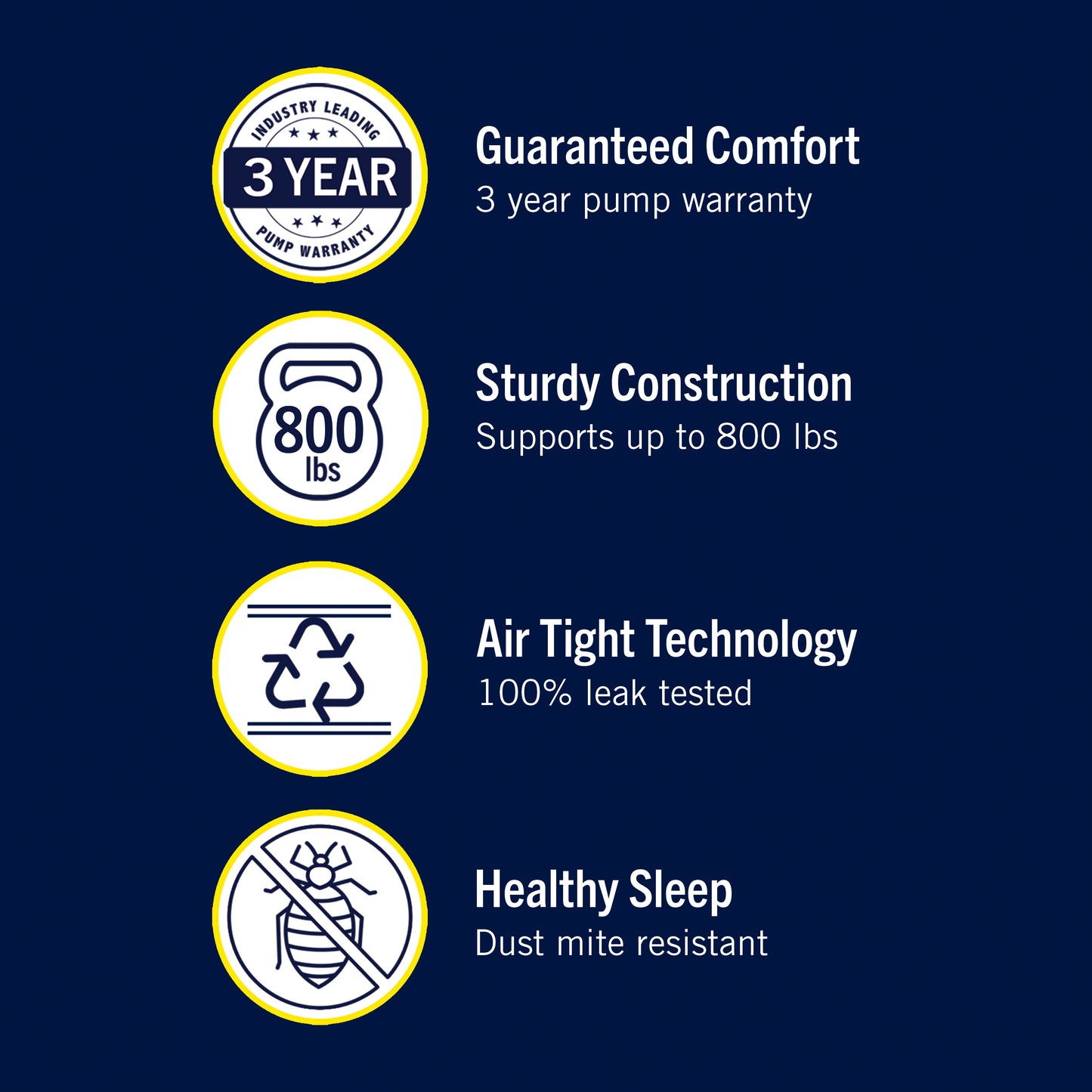 - Durable Ever Firm™ Technology Combines Fabric and Vinyl for a Non-Stretch, Puncture Resistant, Air Tight Mattress