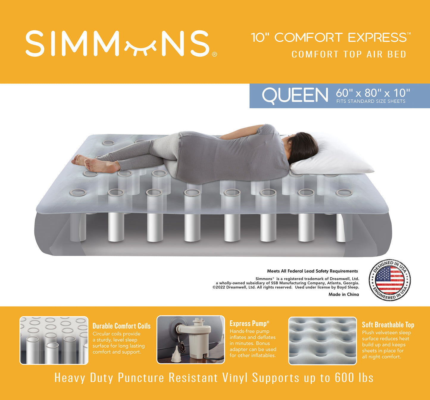 - Hand Free Electric Express Pump® Inflates and Deflates in Minutes